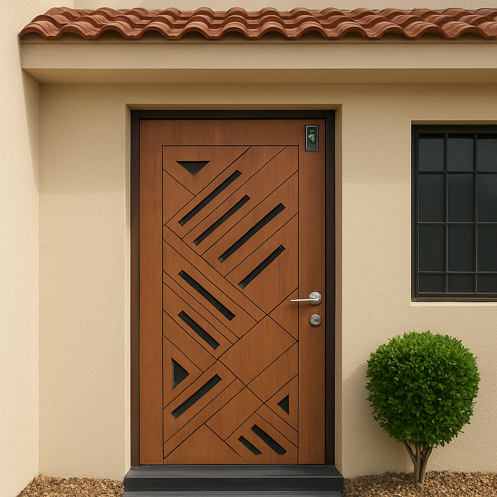 This modern design safety door combines artistic geometric patterns with robust construction, giving your entrance a touch of sophistication without compromising safety.